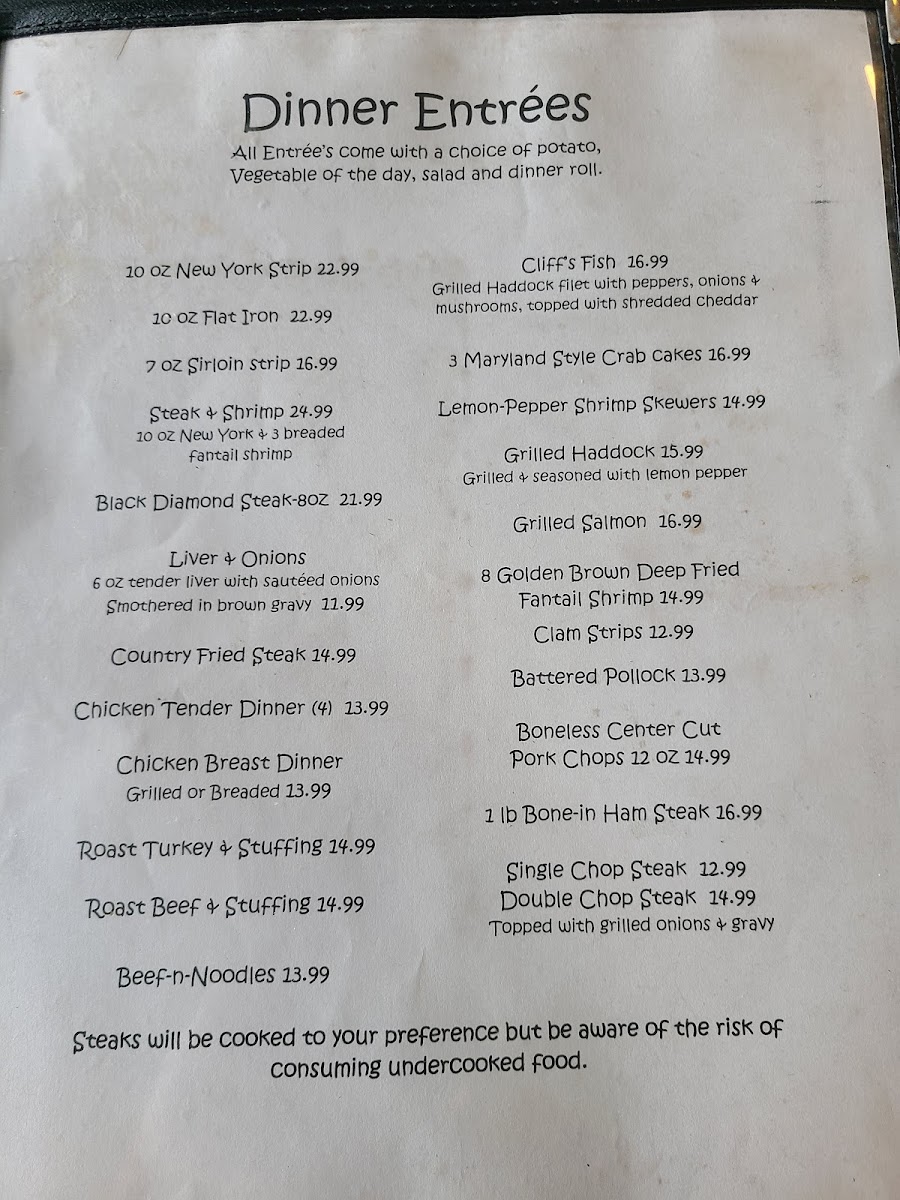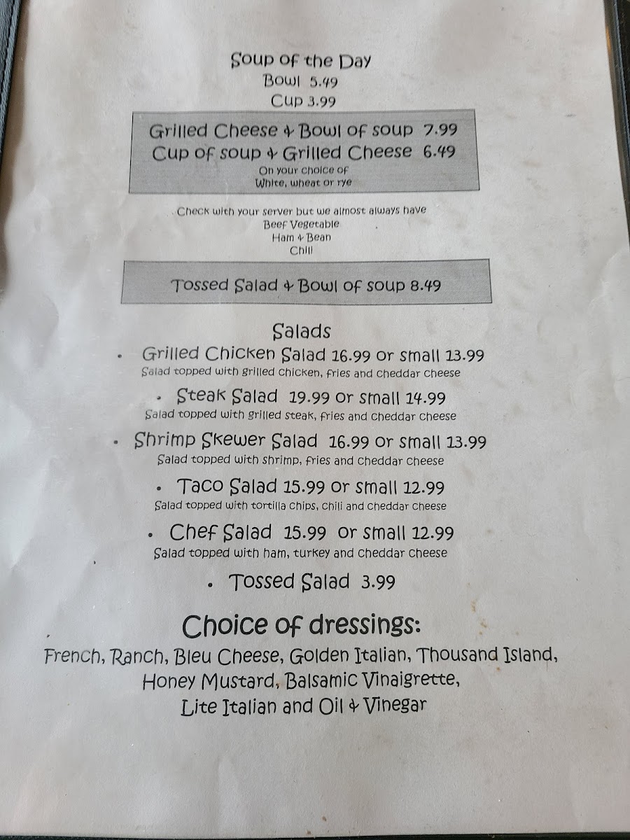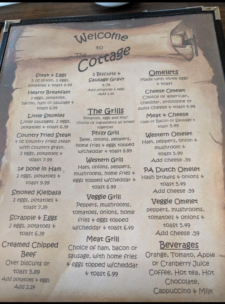 The Cottage Family Restaurant Menu