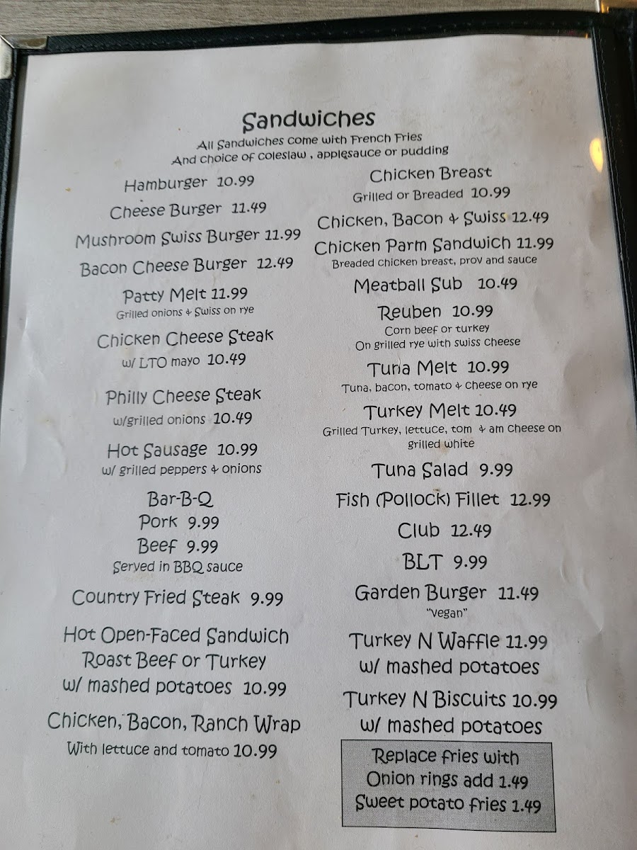 This menu fits naturally within the restaurant’s down-to-earth, family-friendly environment, inviting guests to enjoy satisfying meals that feel like a taste of home at any time of day.